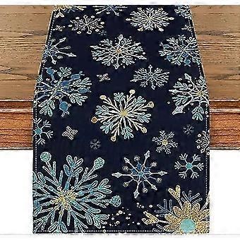 Blue Snowflakes Hexagon Winter Table Runner, Seasonal Christmas Kitchen Dining Table Decoration for Outdoor Home Party