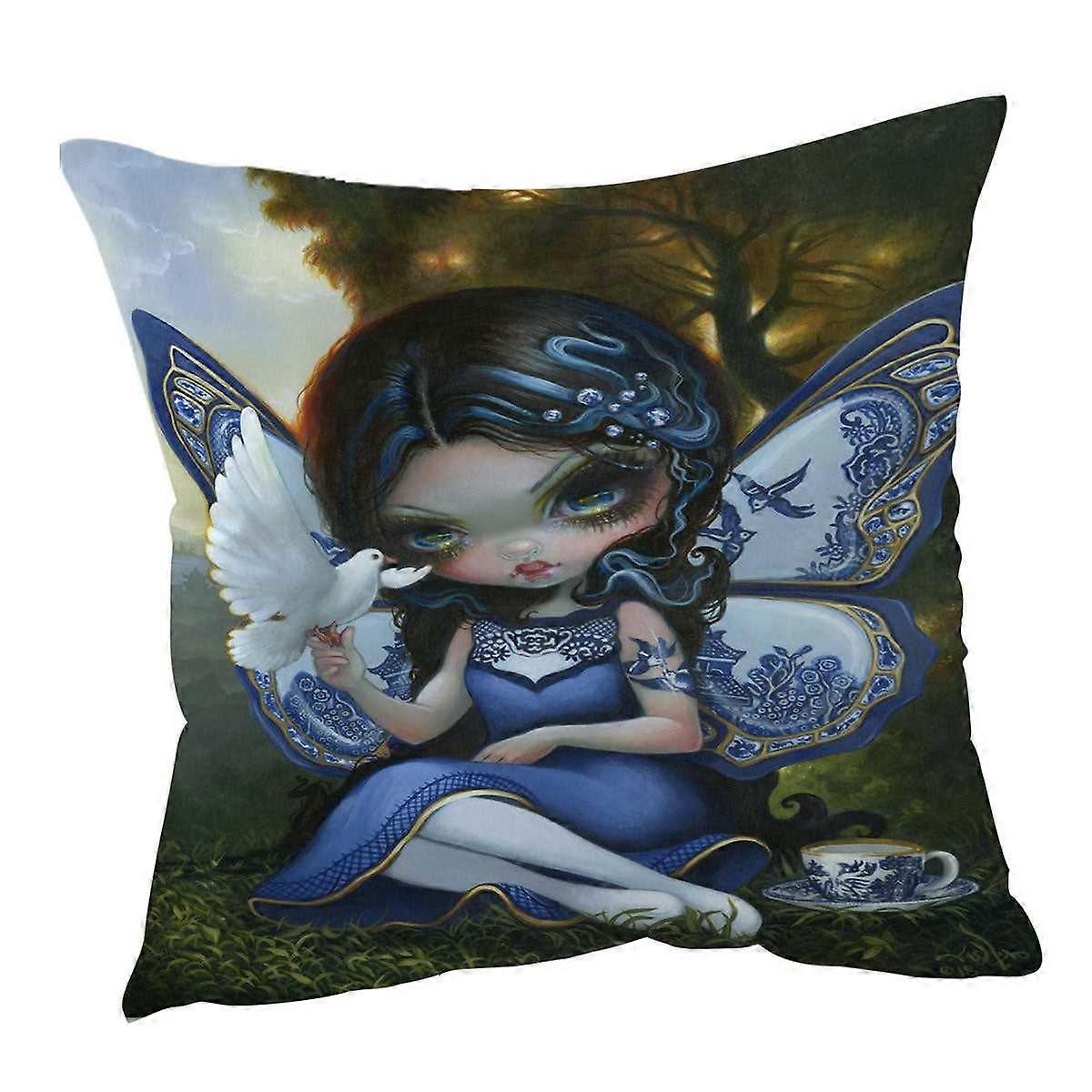 Blue Willow Fairy Porcelain Winged Fairy Cushion Cover
