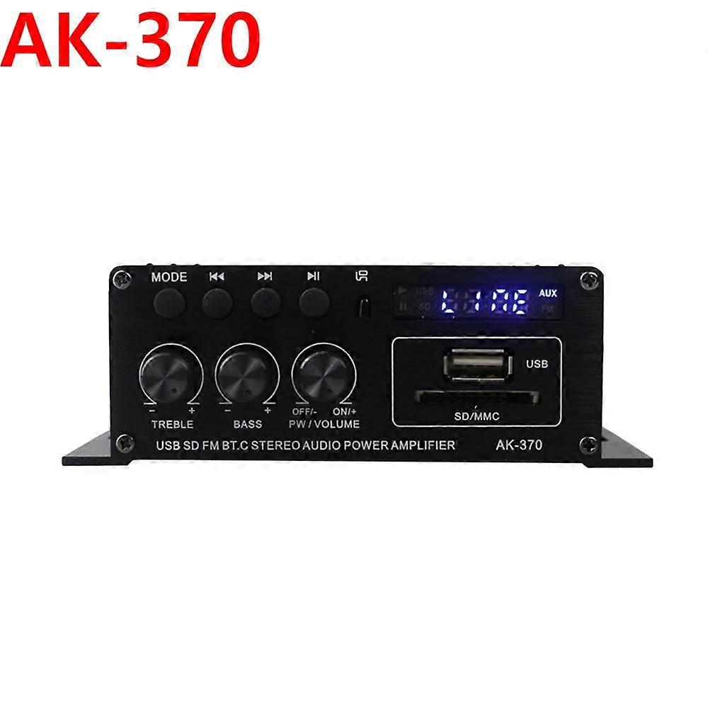 Bluetooth Amplifier 2.0 Channel Hifi Sound Amp With Bass & Treble Control. HiFi Power Amplifier AK-370 Elevate Your Audio Experience with the AK-370 HiFi Power Amplifier, Designed to Deliver Superior Sound Quality with Its 2.0 Channel Output. Equipped with Bluetooth 5.0, This Amplifier Ensures Seamless Wireless Connectivity, While the Multiple Input Modes—USB, Aux, Bluetooth, and SD—provide Versatile Options for Any Audio Setup. Crafted from Durable Aluminum Alloy, the Compact Design (125x75x40mm) Fits Elegantly into Any Space. With a Maximum Power Output of 20W Per Channel, the AK-370 Guarantees Clear and Powerful Sound, Maintaining a Distortion Rate of Only 0.1%. The High Signal-to-noise Ratio of 90dB Ensures Crisp Audio Clarity, While Supporting an Impedance Range of 4-16 Ω. Whether You're Enjoying Music, Movies, or Games, This Amplifier Enhances Your Experience with Its Broad Rated Frequency of 20-20KHz. Features: - HiFi Audio Amplifier with 2.0 Channels - Bluetooth 5.0 Connectivity - Multiple Input Options: USB, Aux, Bluetooth, SD - Durable Aluminum Alloy Build - RMS Power: 20W + 20W - High SNR of 90dB - Low Distortion Rate: 0.1% - Supports 4-16 Ω Impedance - Compact Size: 125x75x40mm Package Includes: - 1x Power Amplifier - 1x Remote Control - 1x FM Antenna - 1x User Manual - 1x Power Supply (optional). Your order tracking code will be sent on shipping and takes up to 5 days to show live information.
