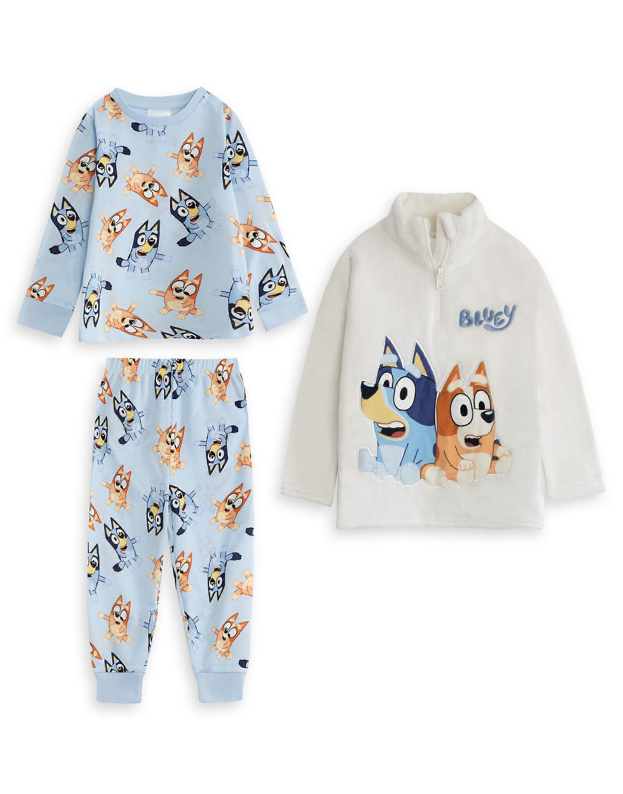Bluey Boys Long Sleeve Long Leg Pyjama and Jumper 3 Piece Set Blue Character