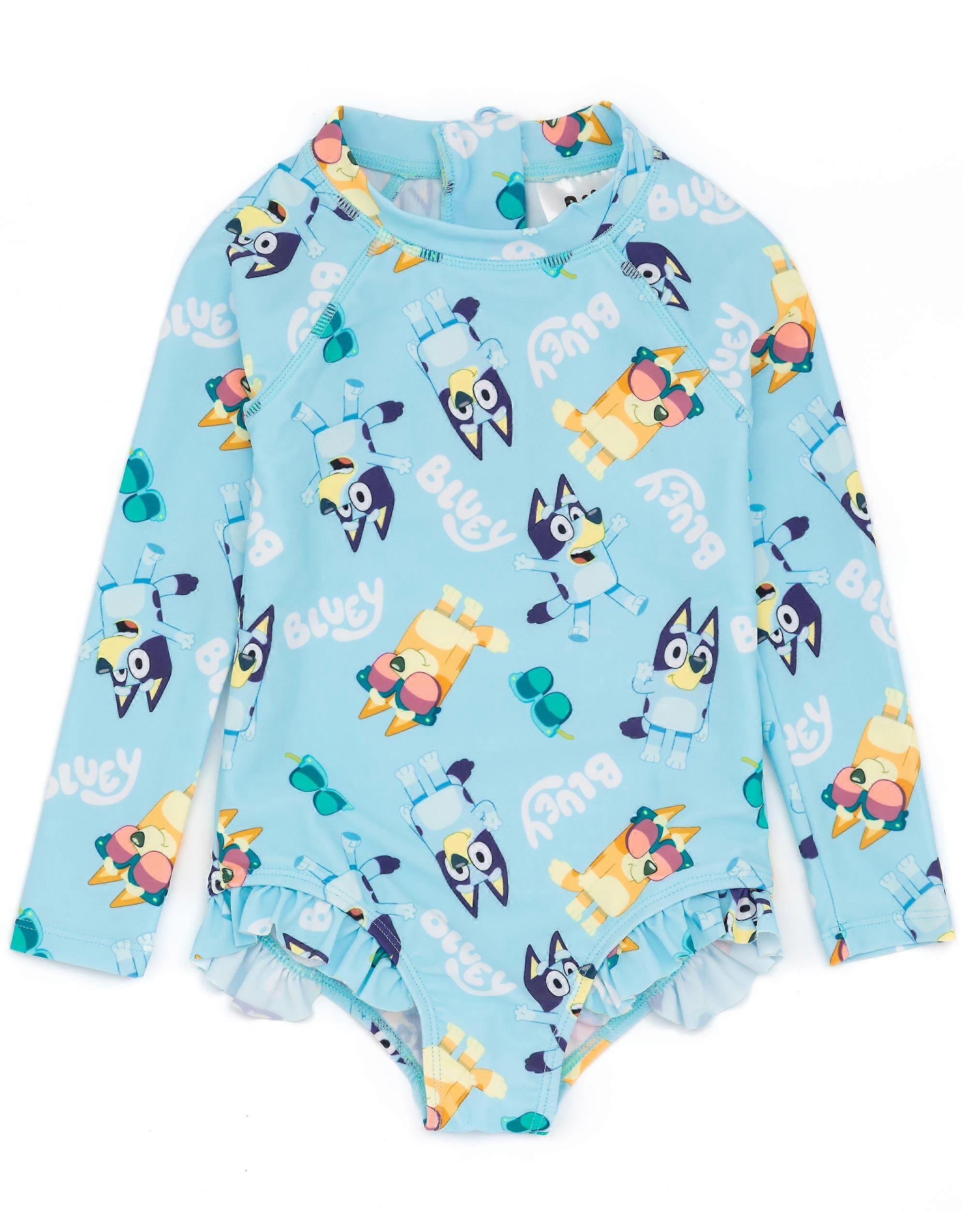 Bluey Girls 1 Piece Swimming Costume Blue All Over Print