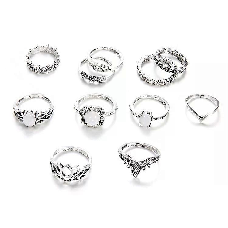 Bohemian Crystal Ring Set-11 PCS Opal Lotus Hollow Totems by