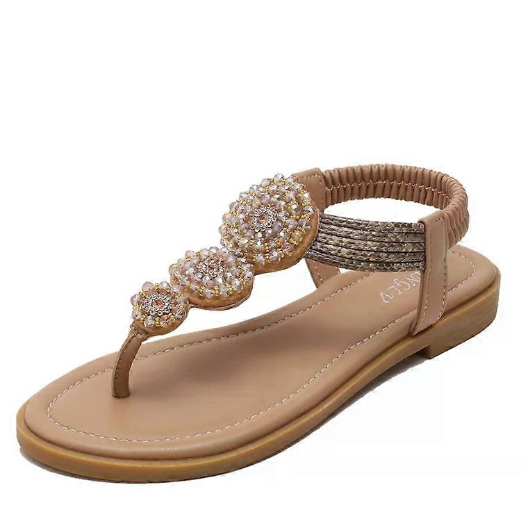 Bohemian Flat Beach Sandals for Women-Summer Seaside Shoes,Size 39 Apricot Apricot,39