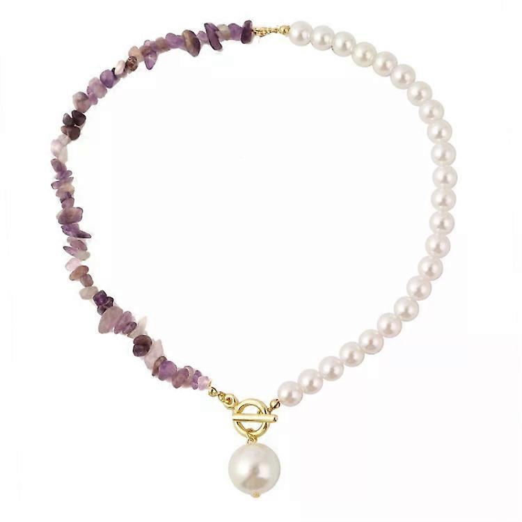 Boho Colorful Natural Stone Necklace-Purple Single Chain by