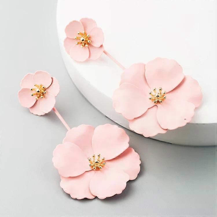 Boho Flower Earrings-2 PCS Alloy Long Pink Earrings by Pink