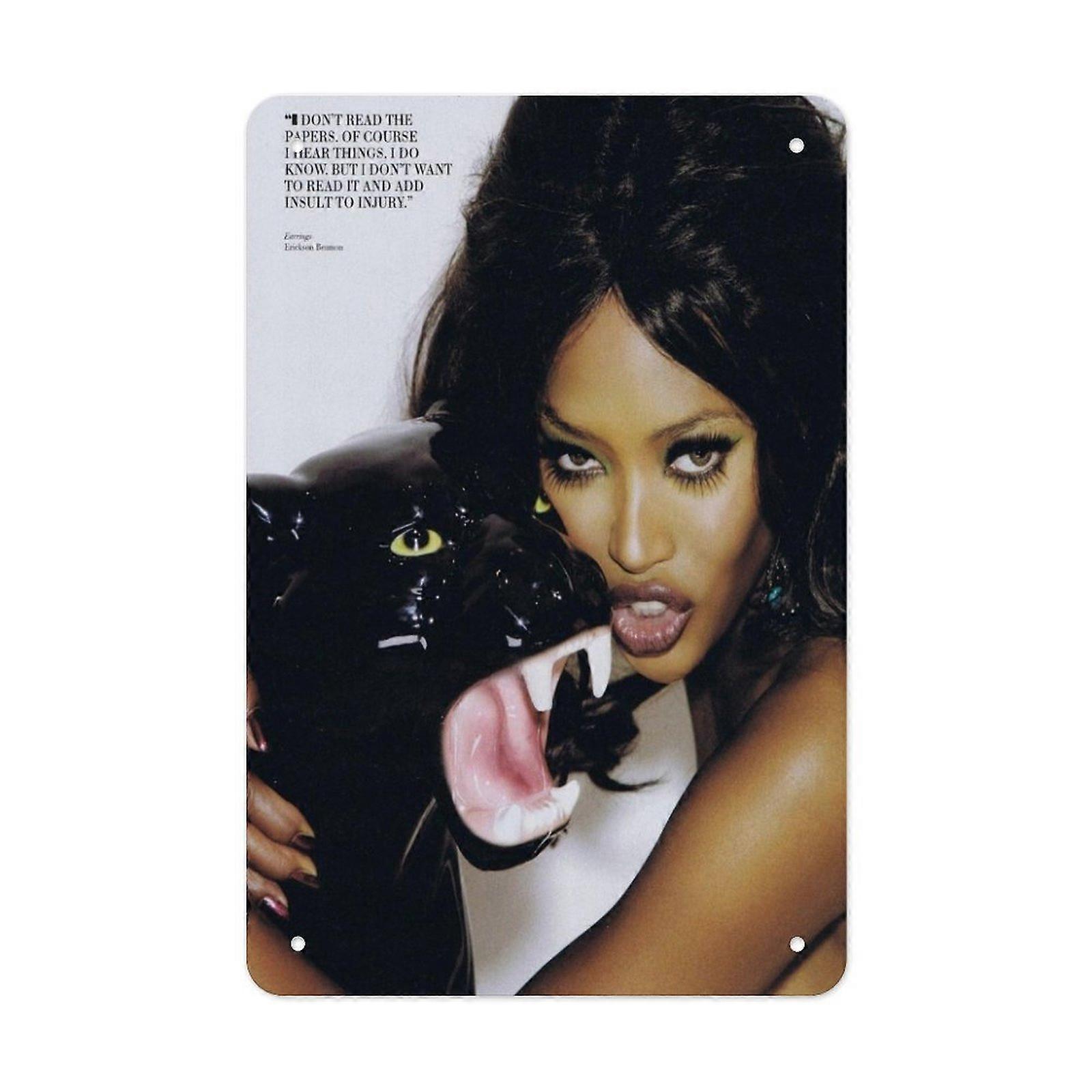 Bold Fashion Woman & Black Panther Vintage Metal Sign Glamour Art Style Wall Decor Retro Home Decoration