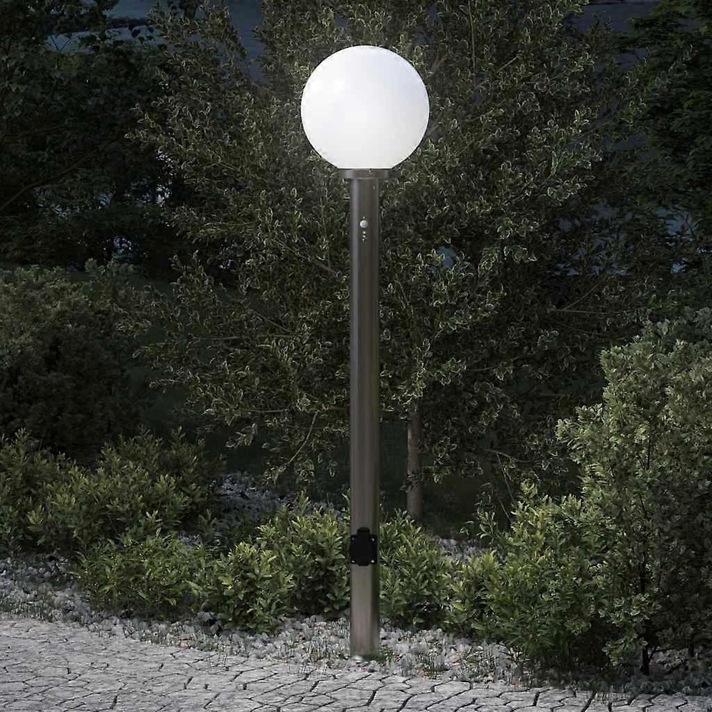 Verschönern Sie Ihren Außenbereich mit dieser eleganten und funktionalen Pollerleuchte Langlebiges Material mit IP44-Schutzart: Diese Außenstehleuchte aus Edelstahl mit IP44-Schutzart ist robust, wetterbeständig und perfekt für den langfristigen Einsatz im Freien.PIR-Bewegungssensor: Die Außenstehleuchte ist mit einem integrierten PIR-Bewegungssensor (Passiv-Infrarot) ausgestattet, der einen Erfassungswinkel von 120° und eine effektive Reichweite von 5-8 Metern bietet. Sie können sowohl die Helligkeitsempfindlichkeit als auch die Leuchtdauer einstellen und eine Relaiszeit zwischen 10 Sekunden und 5 Minuten auswählen. Das Licht schaltet sich automatisch ein, wenn eine Bewegung erkannt wird.Integrierte Steckdose: Die Gartenstehleuchte verfügt über eine integrierte Steckdose, an die Sie problemlos andere Außengeräte anschließen können. Genießen Sie einfachen Zugang zu Strom für Ihre festliche Beleuchtung, Telefonladegeräte oder andere wichtige Dinge in Ihrem Garten.Mit Diffusor: Die Außenstehleuchte wird mit einem Kunststoffdiffusor geliefert, der die Lichtquelle vor Elementen wie Staub, Wasser und Schmutz schützt und gleichzeitig für eine gleichmäßige und diffuse Lichtabgabe sorgt.Vielseitigkeit: Die stilvolle Terrassenstehleuchte eignet sich perfekt für verschiedene Außenbeleuchtungsanwendungen. Beleuchten Sie damit Ihren Garten, Ihre Terrasse, Ihren Weg, Ihre Einfahrt oder Ihre Veranda und verschönern Sie gleichzeitig Ihre Außendekoration. Farbe: SilberMaterial: EdelstahlGesamtmaße: 25 x 120 cm (Durchmesser x H)Lampenschirmmaße: 25 x 25 cm (Durchmesser x H)Mastdurchmesser: 11 cmIP-Schutzart: IP44Maximale Lampenleistung: 40 WFassungstyp: E27 (Leuchtmittel nicht im Lieferumfang enthalten)Stromversorgung: 220–240 V~, 50/60 HzMaximale Leistung der Fassung: 720 WAnzahl der Lampenfassungen: 1Mit Steckdose: JaMit Bewegungsmelder: JaSensortyp: Passiv-Infrarot-Bewegungsmelder (PIR-Bewegungsmelder)Bewegungserfassungswinkel: 120°Reichweite des Bewegungssensors: 5–8 MeterZeiteinstellung: 10 Sekunden–5 MinutenVerfügt über einen kugelförmigen LampenschirmFür den Außenbereich geeignetLieferumfang:3 x Pollerleuchte