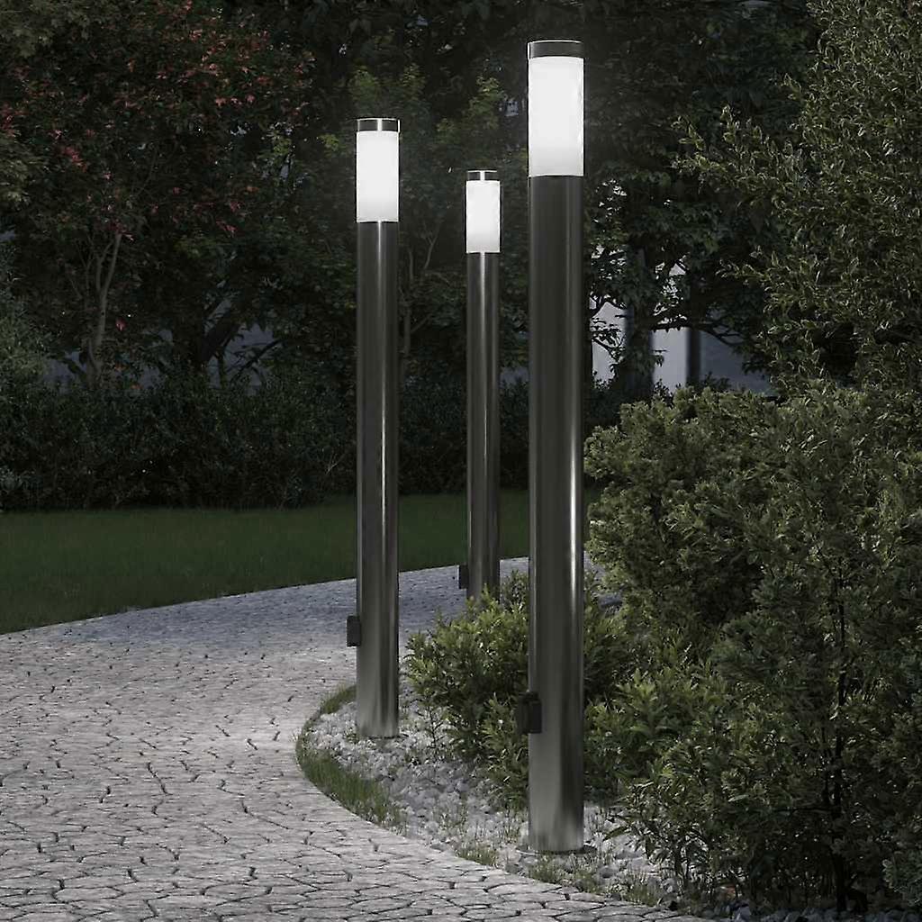 Verschönern Sie Ihren Außenbereich mit diesen eleganten und funktionalen Pollerleuchten Langlebiges Material mit IP44-Schutzart: Diese Außenstehleuchte aus Edelstahl mit IP44-Schutzart ist robust, wetterbeständig und perfekt für den langfristigen Einsatz im Freien.Eingebaute Steckdose: Die Gartenstehleuchte verfügt über eine eingebaute Steckdose, an die Sie problemlos andere Geräte oder Geräte im Freien anschließen können. Genießen Sie einfachen Zugang zu Strom für Ihre festliche Beleuchtung, Telefonladegeräte oder andere wichtige Dinge in Ihrem Garten.Mit Diffusor: Die Außenstehleuchte wird mit einem Kunststoffdiffusor geliefert, der die Lichtquelle vor Elementen wie Staub, Wasser und Schmutz schützt und gleichzeitig für eine gleichmäßige und diffuse Lichtabgabe sorgt.Erhöhte Sicherheit: Die Außenstehleuchte erhellt Ihren Außenbereich und verbessert die Sicherheit durch Minimierung von Stolperfallen.Vielseitigkeit: Die stilvolle Terrassenstehleuchte eignet sich perfekt für verschiedene Außenbeleuchtungsanwendungen. Verwenden Sie es, um Ihren Garten, Ihre Terrasse, Ihren Weg, Ihre Einfahrt oder Ihre Veranda zu beleuchten und gleichzeitig Ihre Außendekoration aufzuwerten. Farbe: SilberMaterial: EdelstahlGesamtmaße: 11 x 110 cm (Durchmesser x H)Lampenschirmmaße: 7,5 x 16 cm (Durchmesser x H)IP-Schutzart: IP44Stromversorgung: 220-240 V~, 50/60 HzFassungstyp: E27 (Leuchtmittel nicht enthalten)Maximale Leuchtmittelleistung: 40 WMaximale Leistung der Fassung: 720 WAnzahl der Lampenfassungen: 1Mit Steckdose: JaMit Bewegungsmelder: NeinFür den Außenbereich geeignetLieferumfang:3 x Pollerleuchte