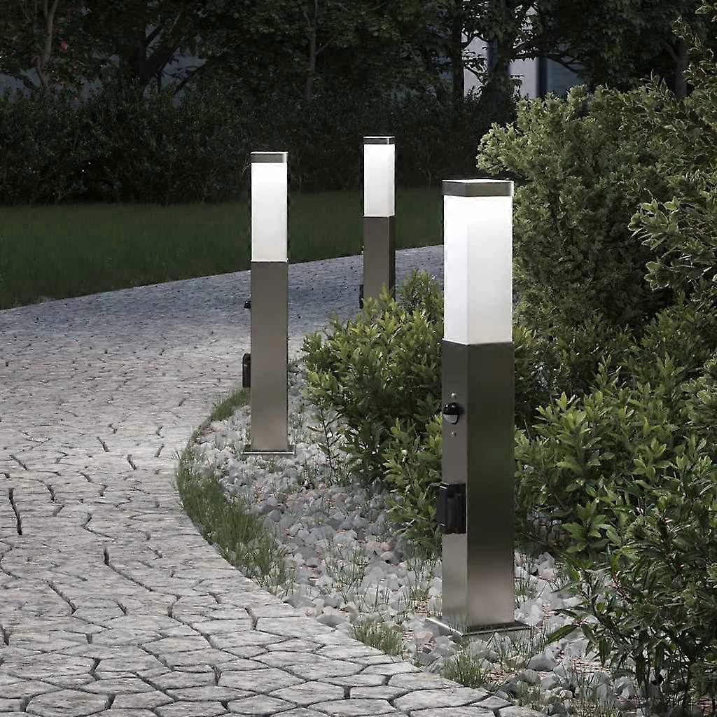 Pollerleuchten mit Sensor&Steckdose 3 Stk. 50 cm Edelstahl IP44