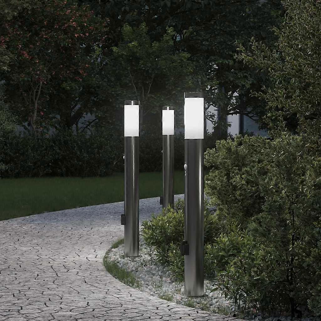 Pollerleuchten mit Sensor&Steckdose 3er 80 cm Edelstahl IP44