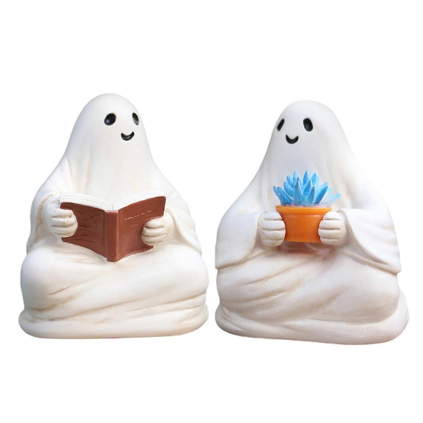 Book Reading Ghost Couple Statue Resin Sitting Ghost Figurine for Lawn Yard & Home Halloween Bookshelf Office Desk Decor