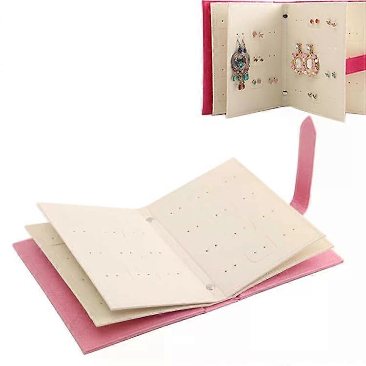 Book Shape Jewelry Storage Box-Portable Ear Stud Earrings Display Rack,Pink Pink
