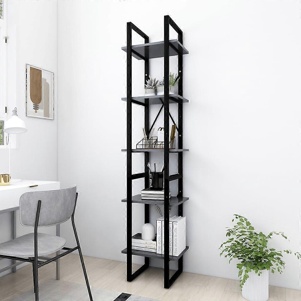 Bücherregal 5 Fächer Grau 40x30x175 cm Holzwerkstoff