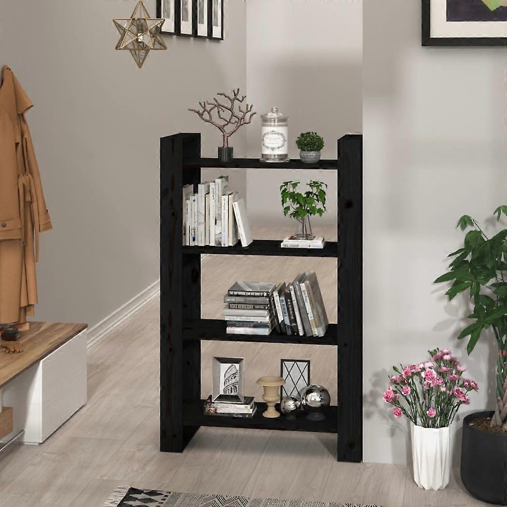 Bücherregal/Raumteiler Schwarz 80x35x125 cm Massivholz Kiefer