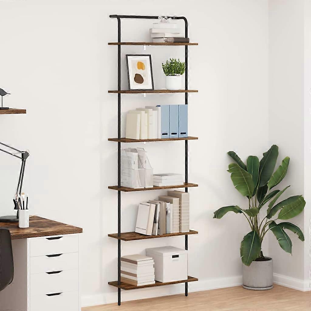 Farbe: Geräucherte EicheMaterial: HolzwerkstoffGesamtabmessungen: 60 x 24 x 203 cm (L x B x H)mit 6 RegalenAnzahl Staufächer: 6StauraumMontage erforderlich: Ja