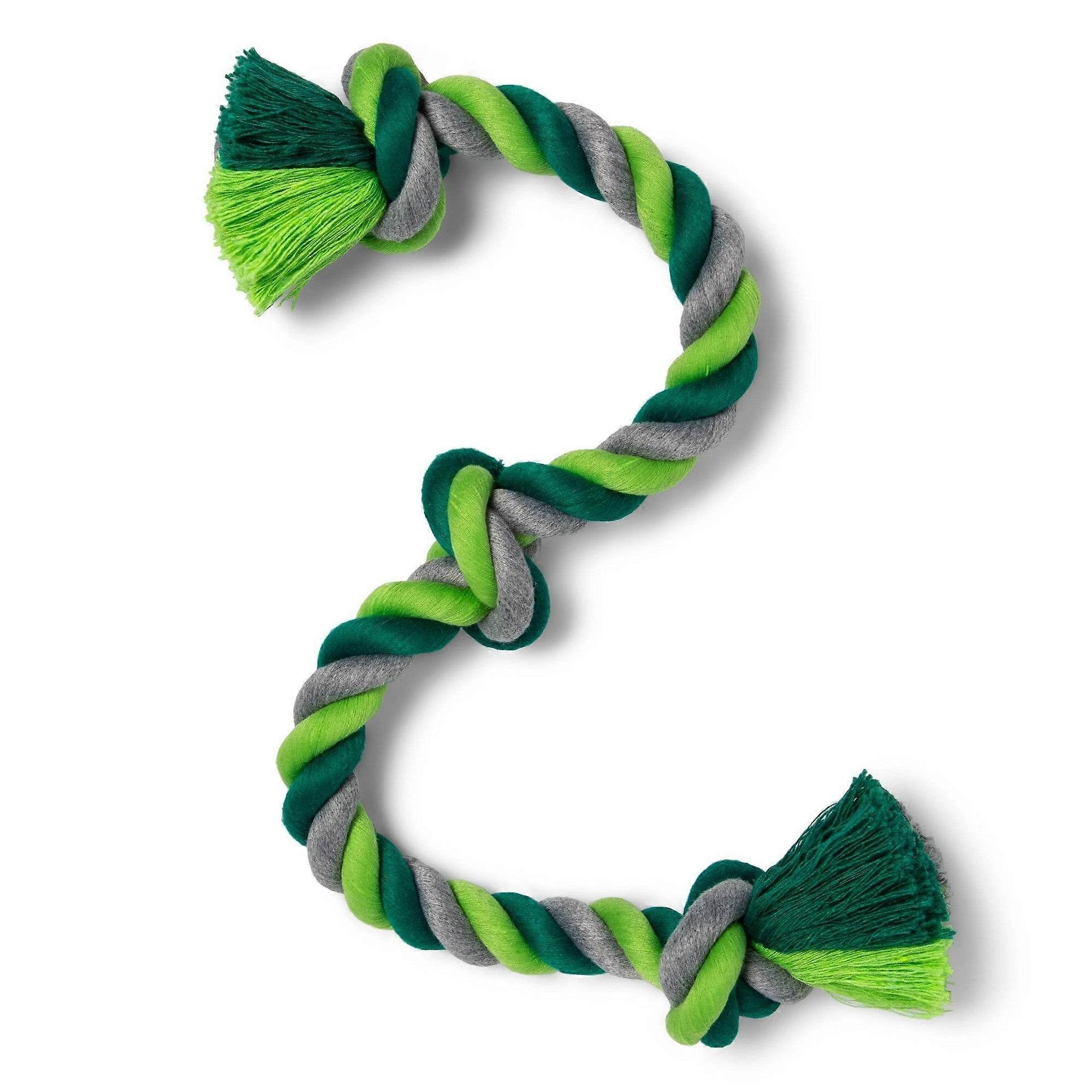 Help your pup stay active with this Dog Rope Toy from Boots & Barkley. This medium-sized dog rope toy is made from a durable fabric in gray, light green and dark green hues, with tassels at the ends completing the colorful and attention-grabbing vibe. Your pooch will love chasing, chewing and tugging on this rope toy, and the three large knots are perfect for playing tug of war. As a bonus, this sturdy rope doubles as a fun teething aid that your pooch can chew on for hours. Loving your pet from head to tail.