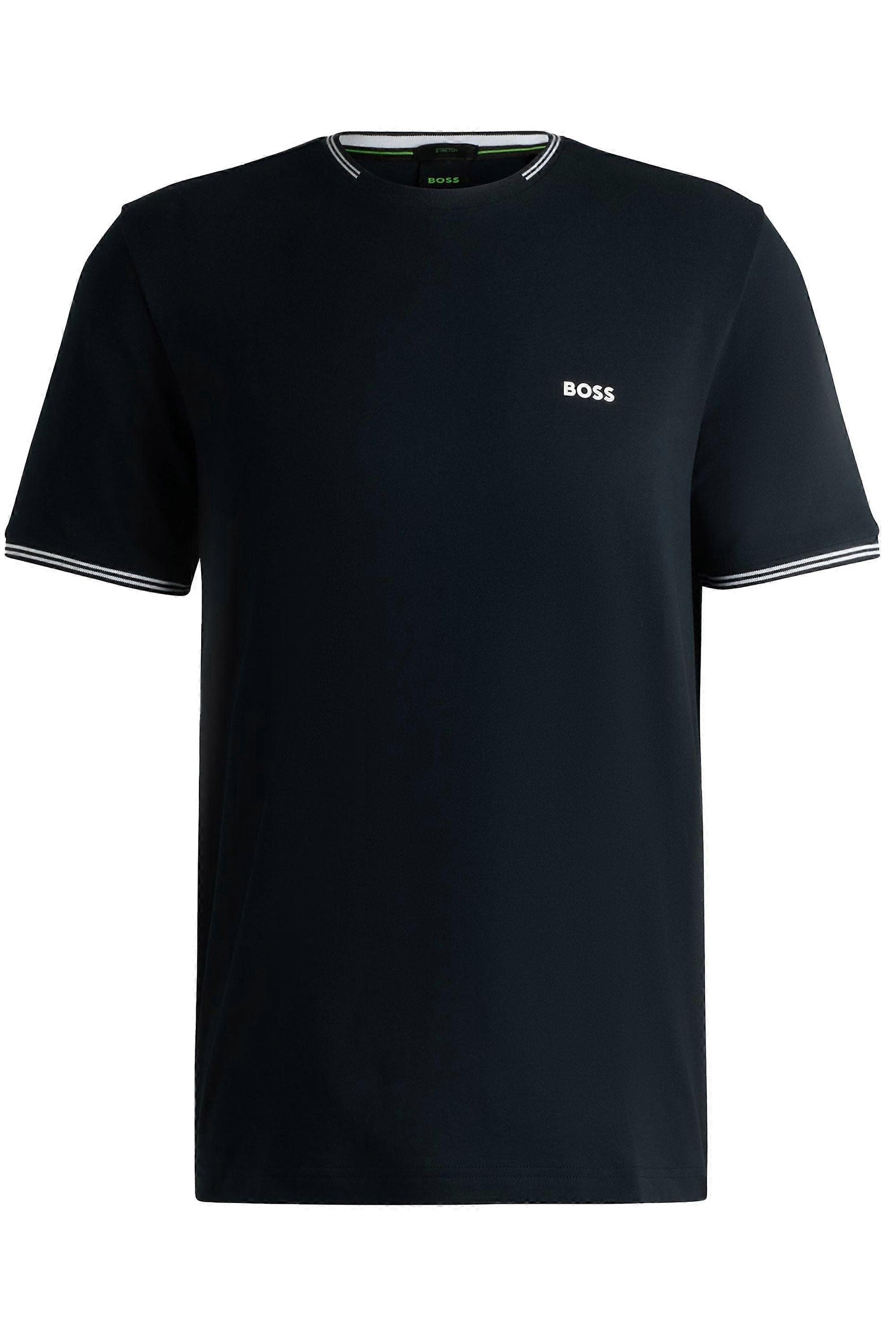 Boss Taul T-Shirt Navy/white Taking design cues from the famous 'Paul' polo that BOSS is renowned for, the Taul takes the same tipping and fabrication and applies it to a crew neck t-shirt with contrast design to the collar, cuffs. Made from 100% Pique cotton 100% Cotton Pique Fabric Logo to chest Tipping Detailing Style - 50521245