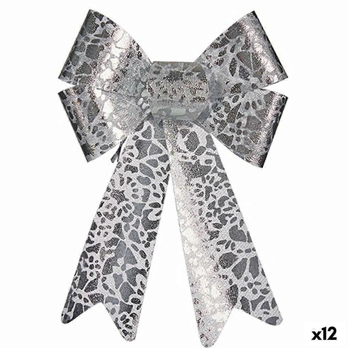 Schleife Krist+ Silberfarben gedruckt 16 x 24 x 4 cm Weihnachtsschmuck (12 Stück)