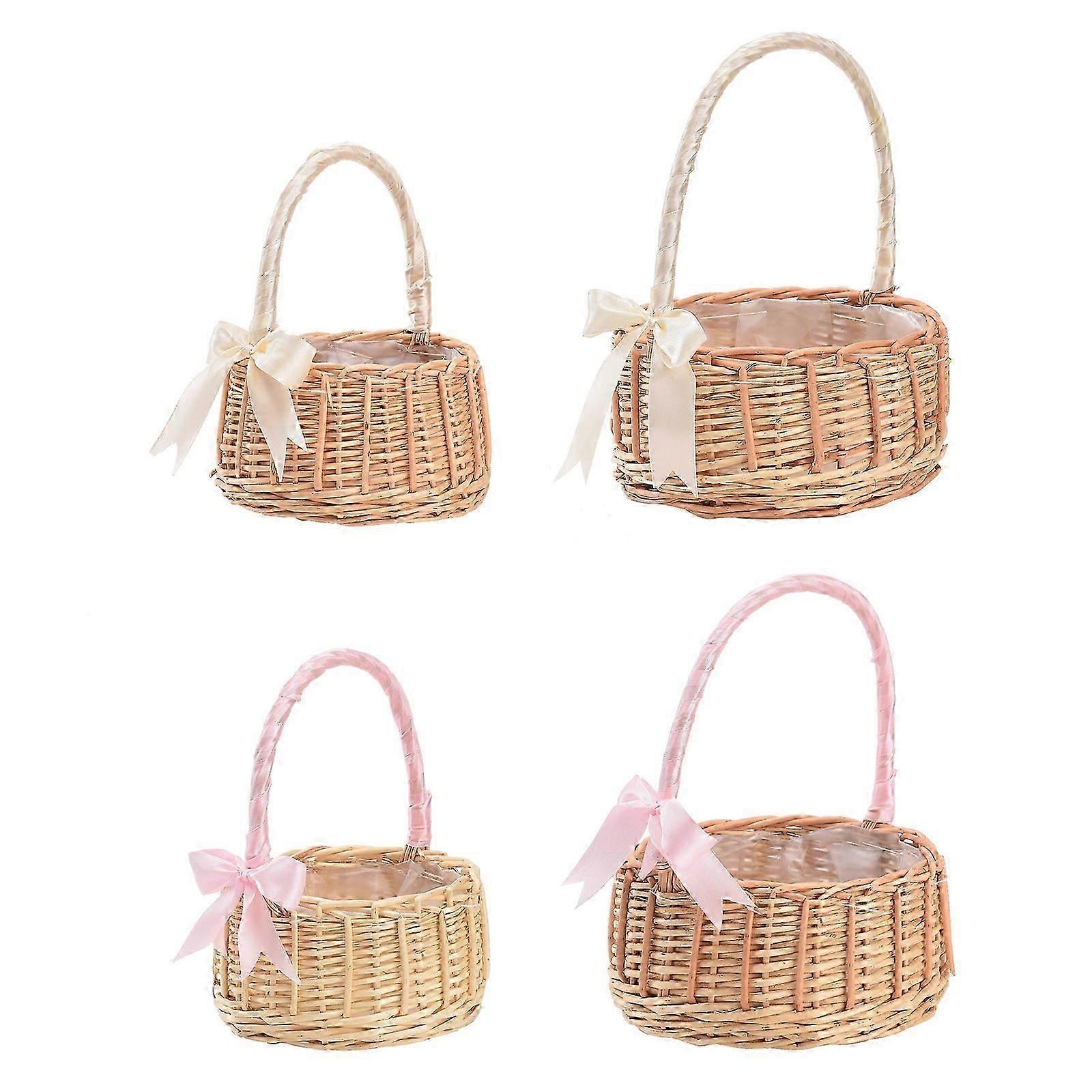 Bowknot Basket Flower Girl Party Wedding Willow Handle Woven Portable Bridals