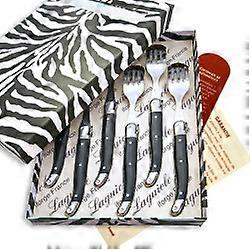 About this item Box of 6 laguiole forks Plastic handle in black ABS Stainless steel cutlery top Thickness: 1.5mm 2 stainless steel bolsters 2 rolled stainless steel plates Dishwasher safe Made in France Delivered in a black cardboard box with certificate of origin