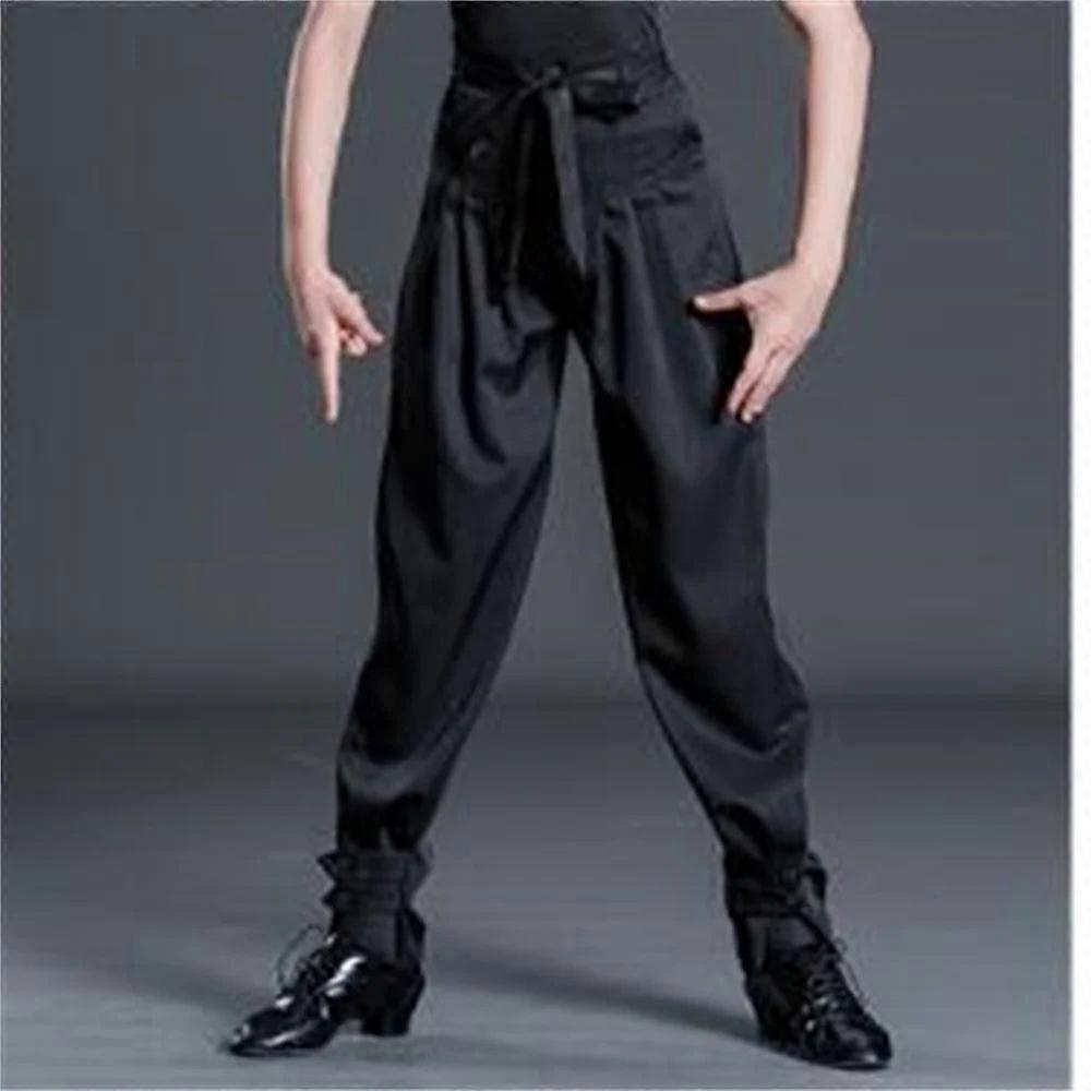 Boys Black Latin Ballroom Dance Pants With Lace-up Waist For Cha