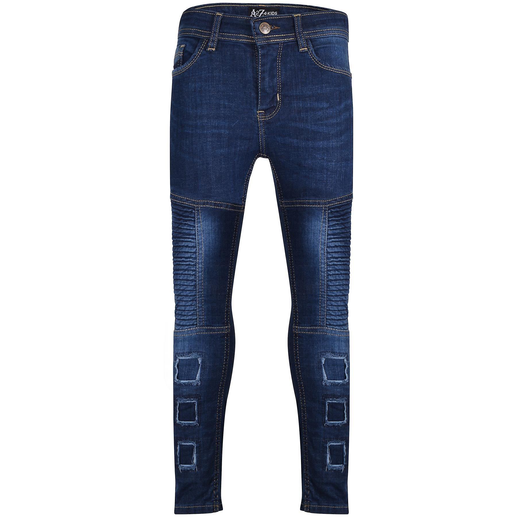 Boys Dark Blue Skinny Ripped Cotton Patched Pants