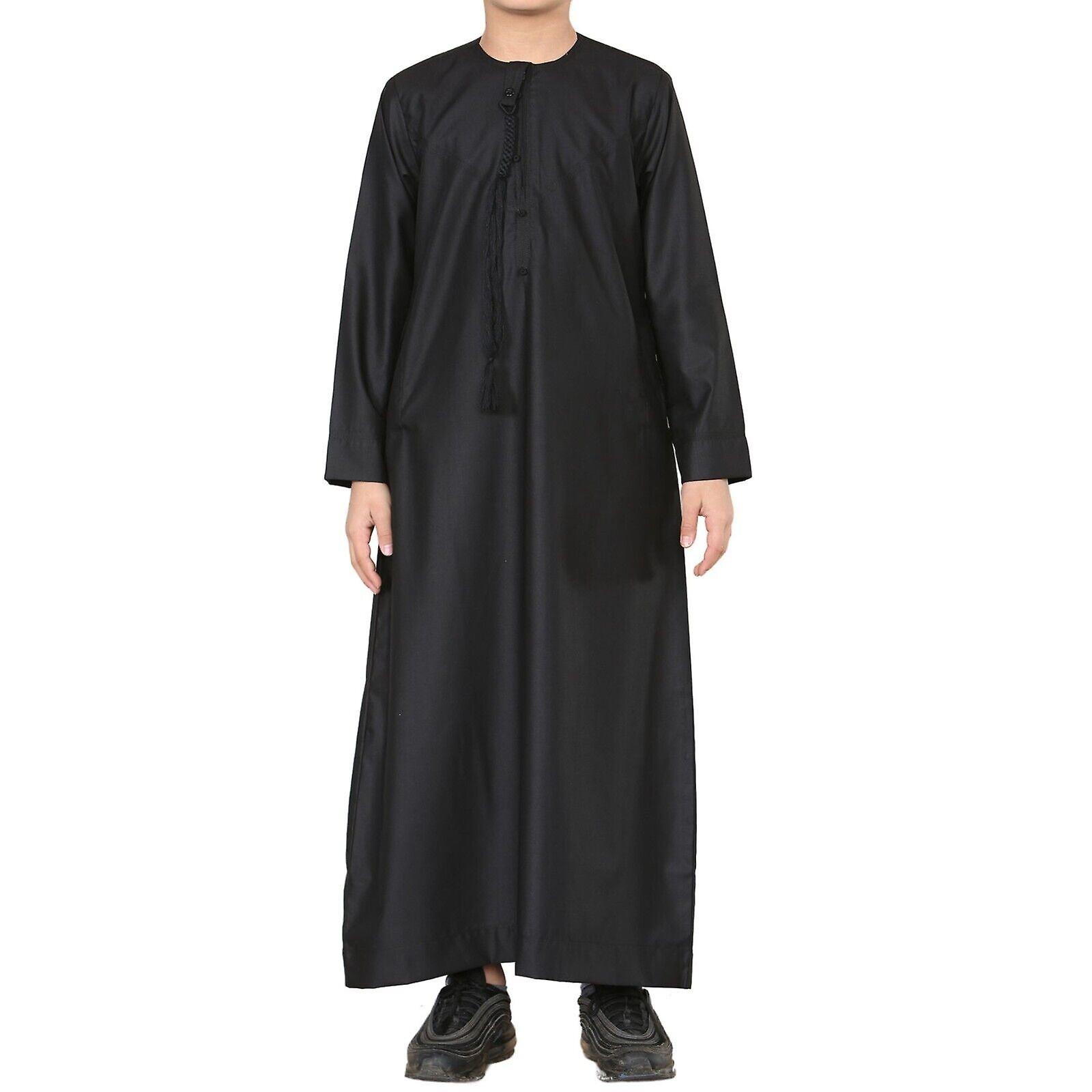 Boy's Kids Black Thobe Emirati Jubba Islamic Clothing Kaftan Eid String Tassel