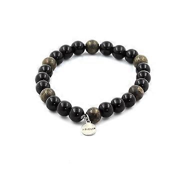 Bracelet Beads Black Agate + Pyrite from South Africa 8 mm