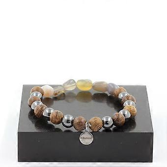 Bracelet Bostwana Agate + Hematite Beads + wood 8 mm