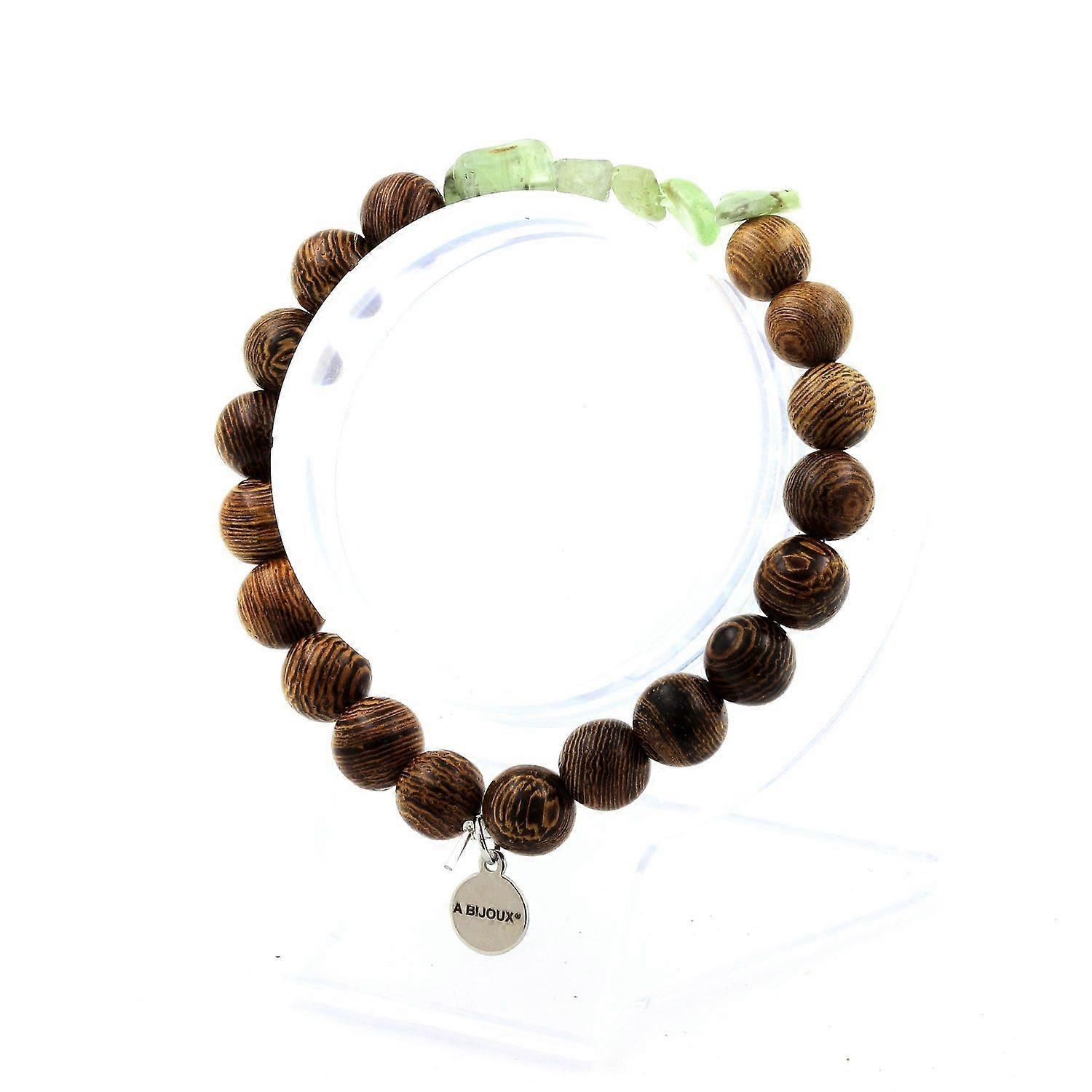 Bracelet Green Apatite from Madagascar + 8 mm wooden beads