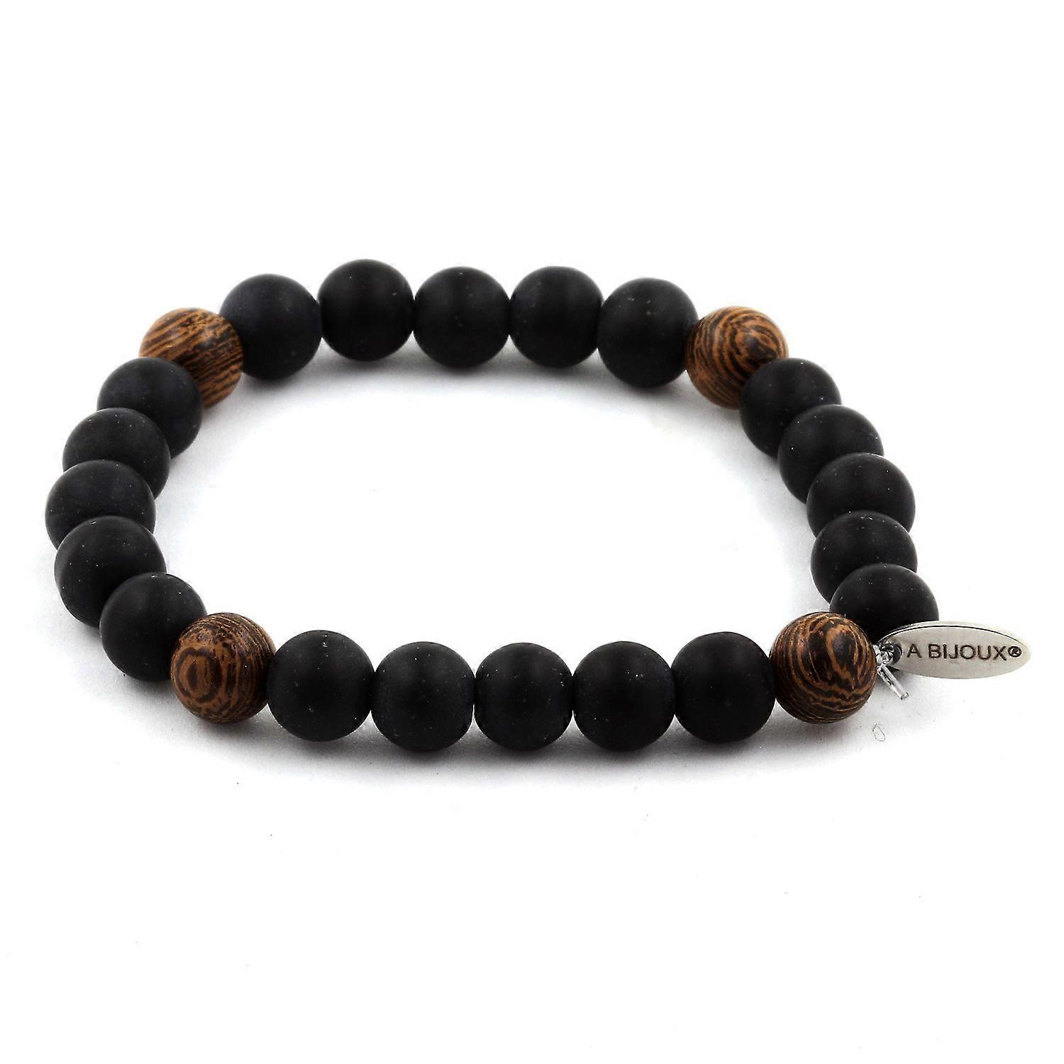 Bracelet Matte black Onyx beads + wood 8 mm