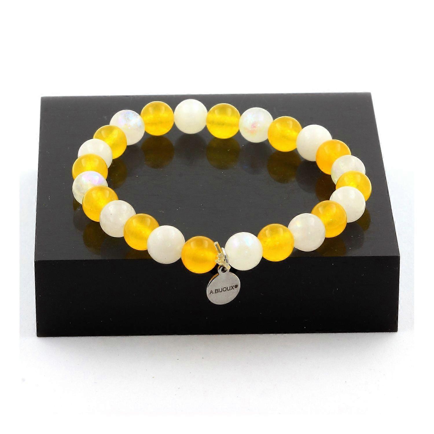 Bracelet Yellow Agate Beads + Moonstone 8 mm