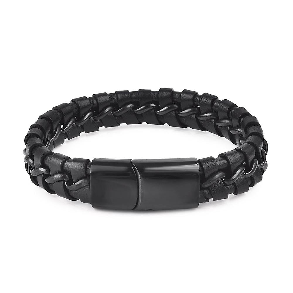 Braided Leather, Stainless Steel Magnetic Clasp Bracelet