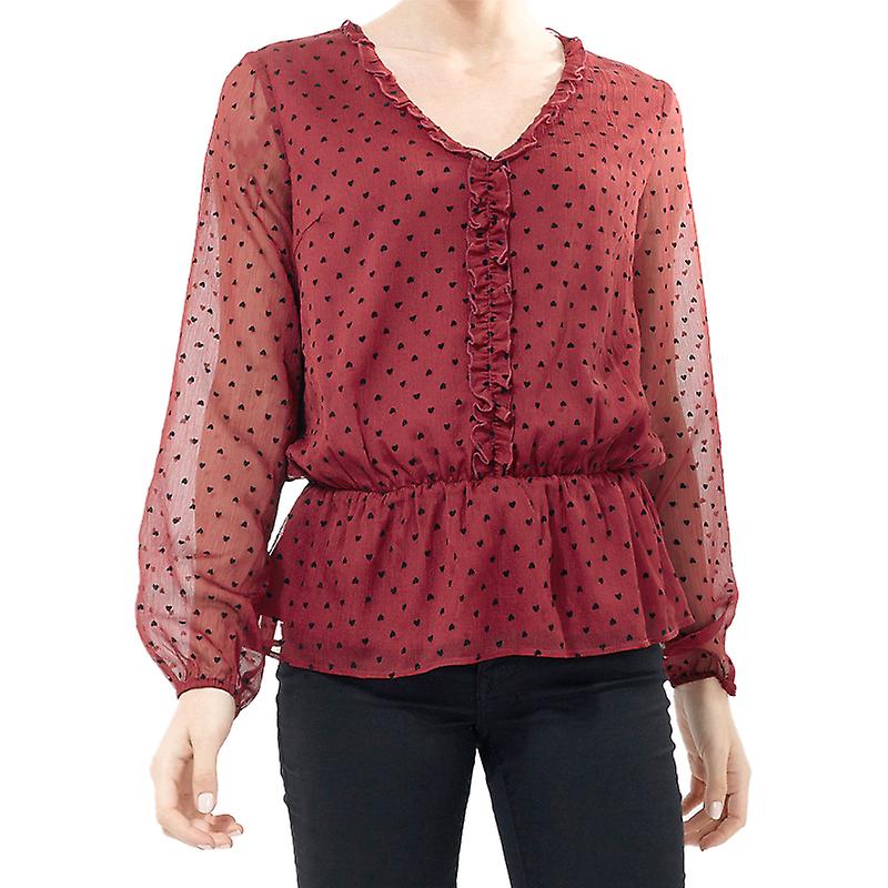 Brave Soul Heart Womens Tops Long Sleeve Neck Ladies Ruffl