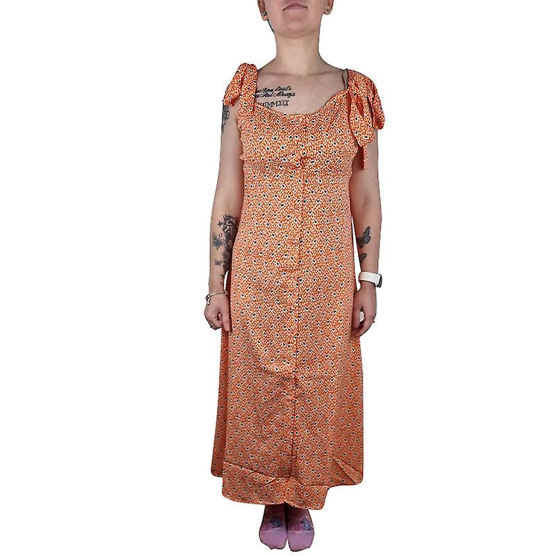 BRAVE SOUL Women's Dress Style Name: CG589938 Style Code: LDRJ-225MYLA Made In China 100% Polyester Shaped Hem Sleeveless Short Length Midi Dress All Over Print Machine Washable High Neckline Comfort, Superior Quality Colour: Orange   Measurements: XS: Pit to Pit 12.5'' - 14.5'', Length 34'' S: Pit to Pit 14'' - 16'', Length 35'' M: Pit to Pit 15'' - 17'', Length 36'' L: Pit to Pit 16'' - 18'', Length 36''   NOTE: Colour may be slightly different due to the light effect.