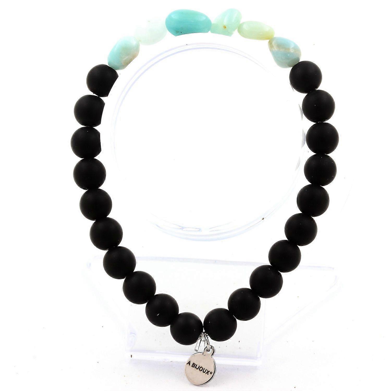 Brazilian Amazonite Bracelet + Matte Black Onyx Beads 8 mm
