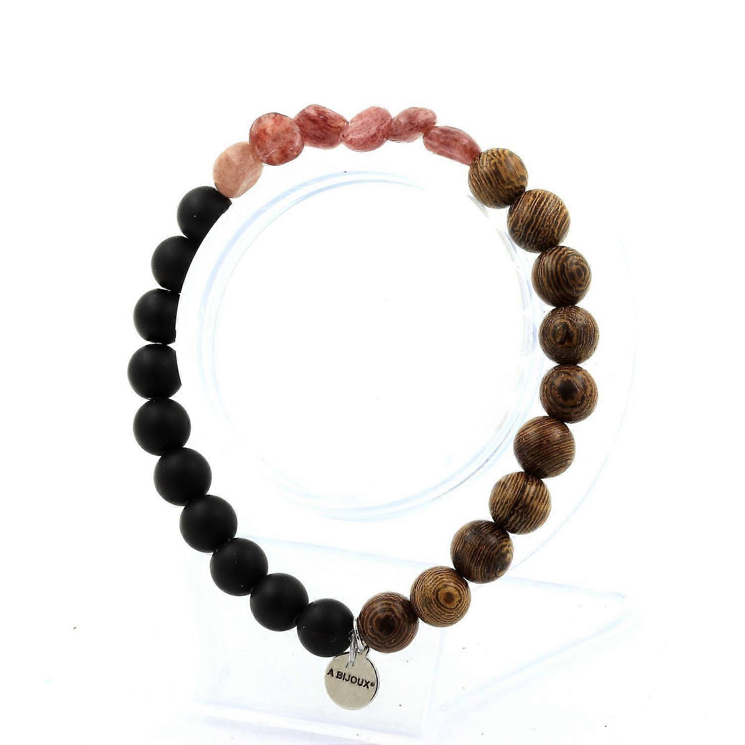 Brazilian Ruby Bracelet + Matte Black Onyx Beads + Wood 8 mm