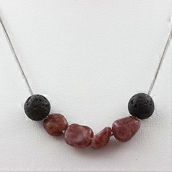 Brazilian Ruby + Lava 8 mm beaded necklace Stainless steel chain