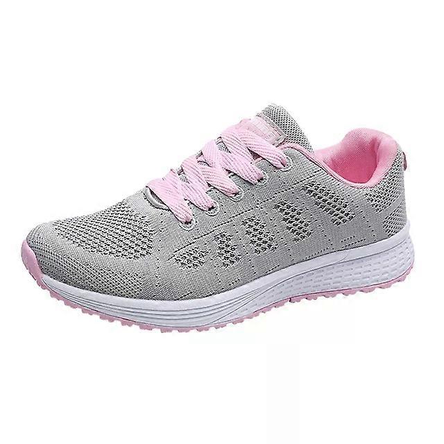 Breathable Mesh Running Sneakers for Women-Casual Flat Shoes,Gray Pink 37 Gray Pink,37