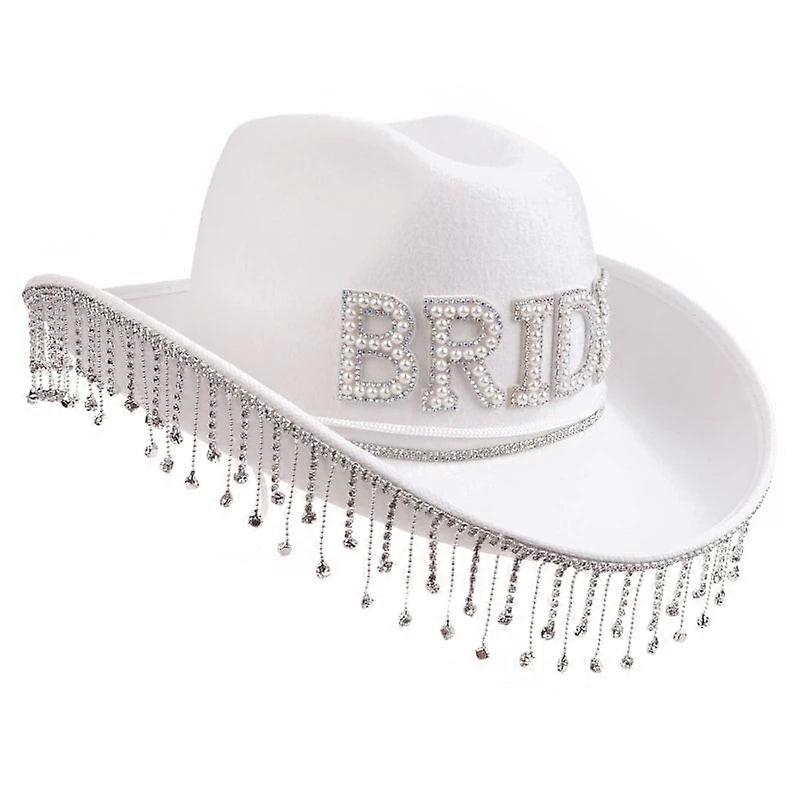 Bride Cowgirl Hat With Fringe Brim - Bridal Western Fedora Sunproof For Wedding