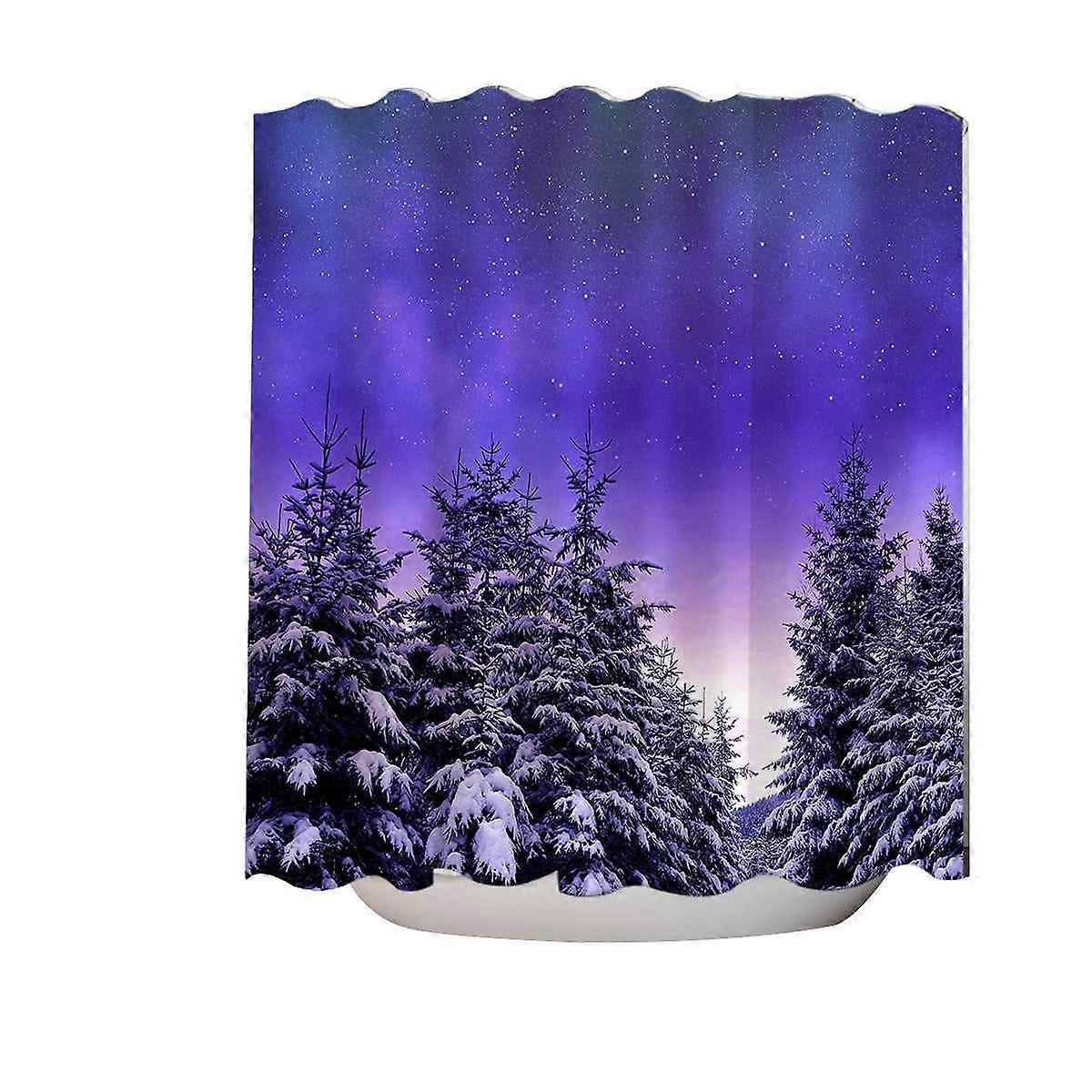 Bright Winter Night in the Snowy Forest Shower Curtain