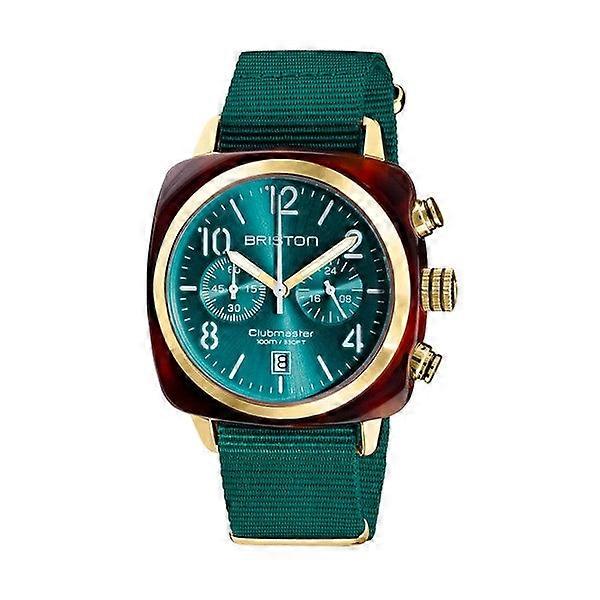Briston Clubmaster Classic Chronograph 40mm Gold Acetate Emerald Green Dial Green Nato Strap 19140.pya.t.27.ne