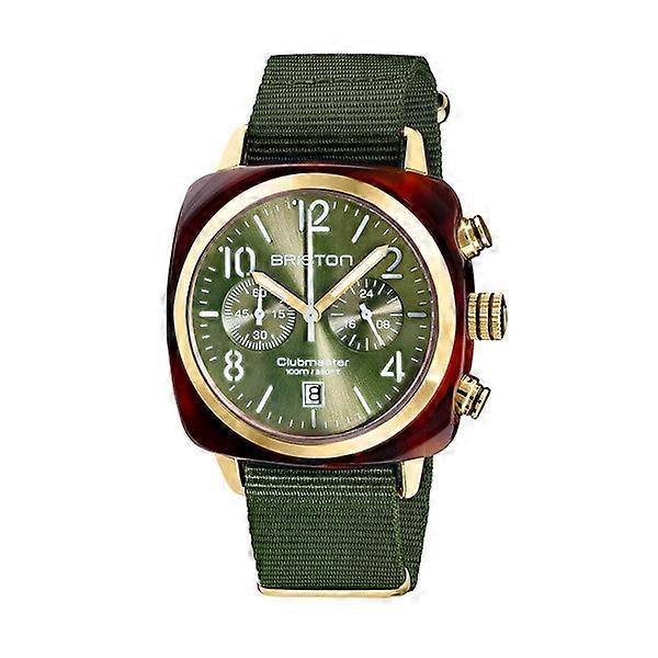 Briston Clubmaster Classic Chronograph 40mm Gold Acetate Green Dial Green Nato Strap 19140.pya.t.26.nol