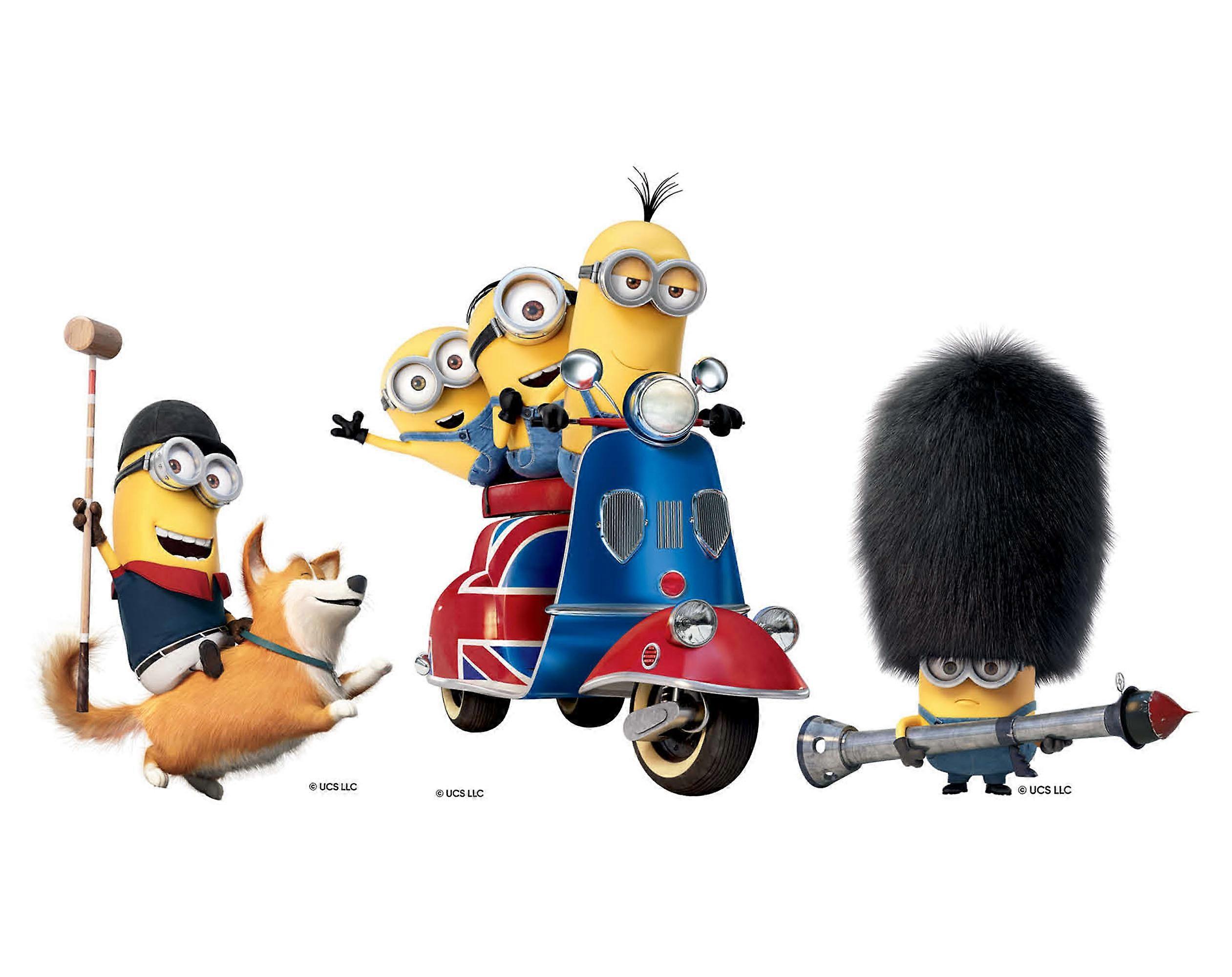 Bring a touch of Minion mischief with a British twist to your home with the Minions shelf top cardboard cutout set This delightful 3-pack features three iconic Minions, each reimagined with a unique British flair, perfect for fans of the lovable yellow troublemakers. Standing at an ideal shelf-top height, these sturdy cardboard cutouts are designed to add a playful accent to any room. The set includes a Minion Polo Player dressed in a classic polo outfit, complete with a mallet, exuding aristocratic charm while riding a cheerful corgi. Another features a Minion Scooter Rider sporting a Union Jack-themed scooter, leading the pack with two buddies in tow, capturing the essence of a British road trip. The third is a Minion Guard decked out in a traditional bearskin hat and holding a comically oversized bazooka, paying homage to the iconic British Royal Guard with a hilarious twist. Ideal for collectors, kids’ rooms, or as a quirky gift, this set celebrates the Minions’ global adventures with a British theme. This pack contains 3 shelf toppers: Minion Kevin riding a Royal corgi while playing Polo Kevin, Bob and Stuart riding a scooter with a Union Jack Minion Bob wearing a bearskin helmet Product Features: • 3 official desk top cardboard standees• Made in the UK• Perfect for events, birthday and themed parties, weddings and children's events• 2D photo quality cardboard cutout manufactured from high quality card• Supplied with mini cardboard stands• Great fun at parties and events and perfect for memorable photo opportunities  Check out more of our official Despicable Me Minion shelf topper packs and cardboard cutouts