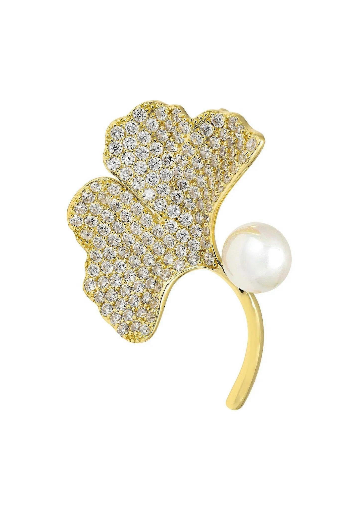 Introducing our Ginkgo Leaf And Pearl Brooch in Gold, a piece that seamlessly blends nature's beauty with luxurious design. Crafted from 925 sterling silver and plated with 18-carat gold, this brooch offers the best of both worlds. At its core sits a radiant pearl, lending an air of timeless elegance to the intricately designed Ginkgo leaf.The leaf itself isn't just for show; it's studded with cubic zirconia to add that extra sparkle to your outfit. With dimensions of 4.00 cm in both length and width, and weighing in at 9.0 grams, this brooch is the perfect size to make a subtle yet captivating statement.Oh, and for those born in June, the pearl is your birthstone, a gem often associated with purity and wisdom. The Ginkgo leaf? It's more than a pretty shape—it symbolizes hope and longevity.Upgrade your style with this golden wonder that offers a unique blend of natural and luxe elements!