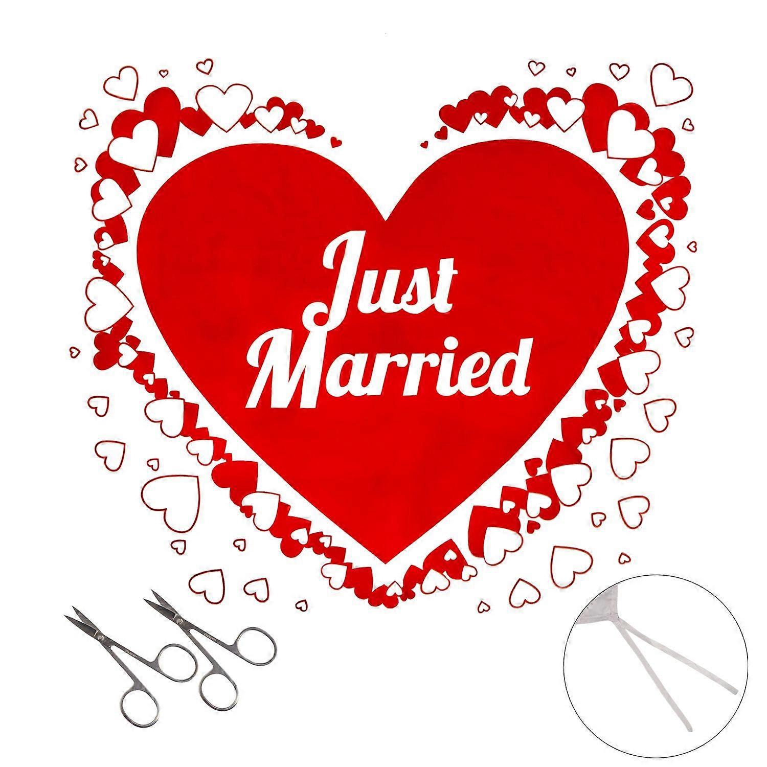 Hochzeitsherz Hochzeitslaken zum Ausschneiden inkl. 2 Scheren - 200 x 152 cm - Hochzeits Deko Herz zum ausschneiden für Brautpaare mit Schlaufen zum Halten