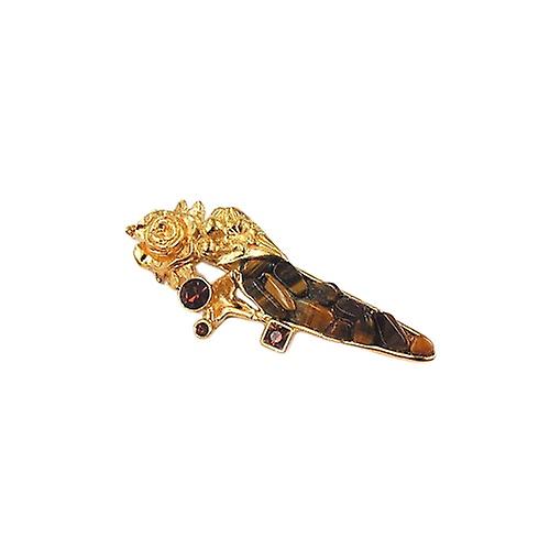 Brosche Anstecknadel 29x74mm tigerbraun goldfarbig
