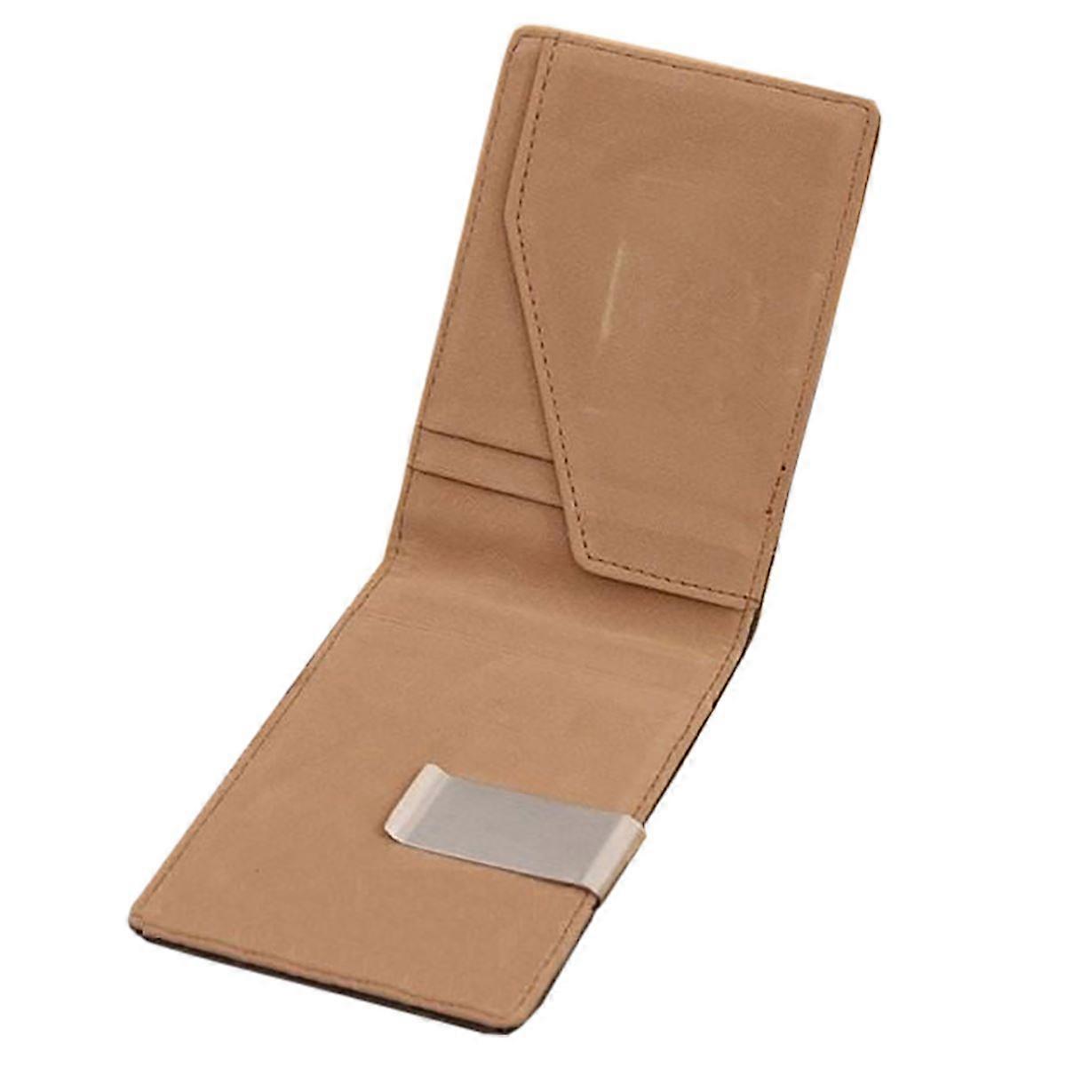Brown Leather Metal Money Clip ID Cash Pouch Bag Credit Card Slim Holder UK