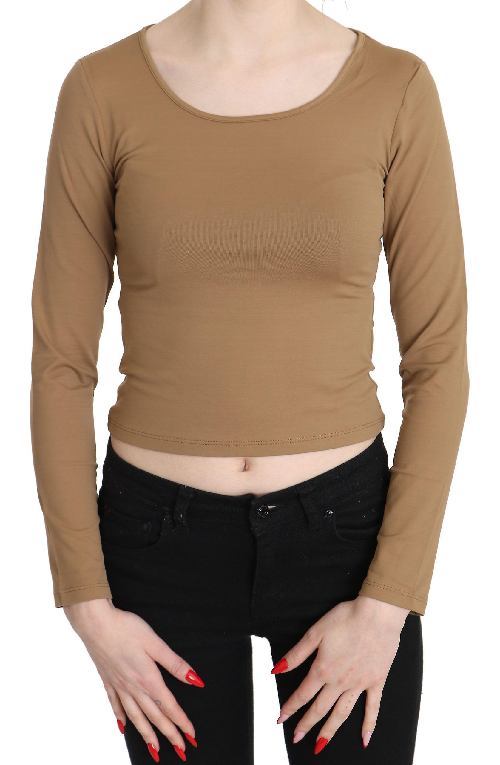GF Ferre Gorgeous with tags, 100% Authentic GF FERRE Blouse. Model: Round Neck Long Sleeve Slim Crop TopColor: BrownMaterial: 95% Nylon 5% Elastane Logo details