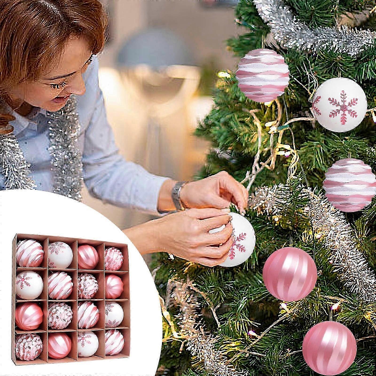 BSJJY 16Pc Colored Balls Christmas Balls,2.4IN Christmas Tree Hanging Ball,Shatterproof Christmas Baubles(Boxed),Pink